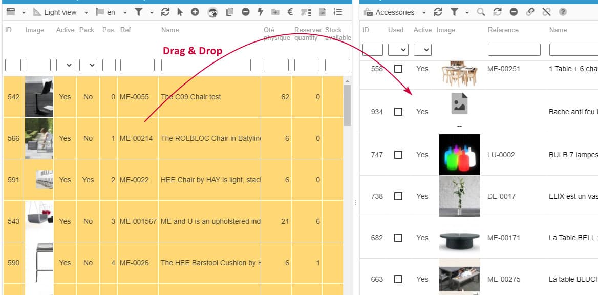 With Store Commander you can add various accessories to multiple products in bulk within seconds, using the Accessories panel in the Properties column, on the right handside.