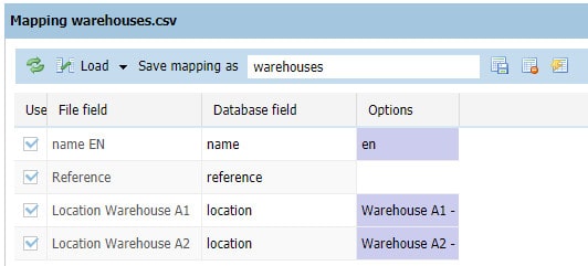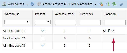 Using Store Commander's CSV import tool, you can specify location of products in various warehouses in bulk.