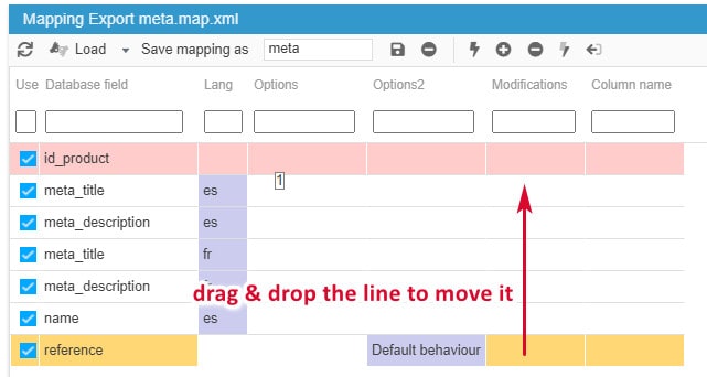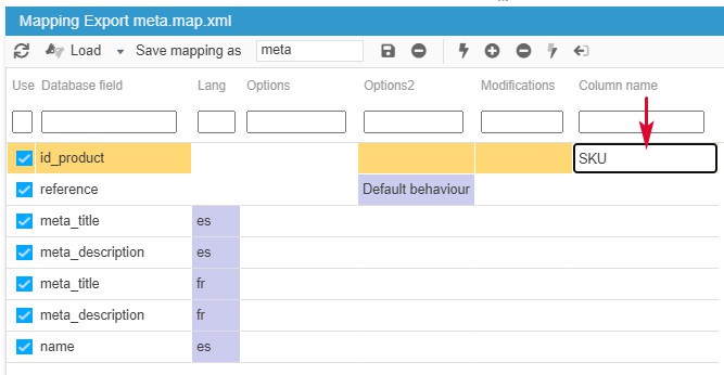 You can also rename column titles using 'Column name' (very useful to export your products onto market places):