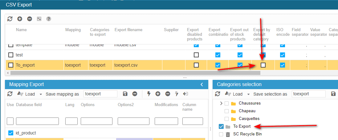 If you need to export specific products, some in a category, and others in a different category, the tip is to create a hidden category and add the concerned products to it.