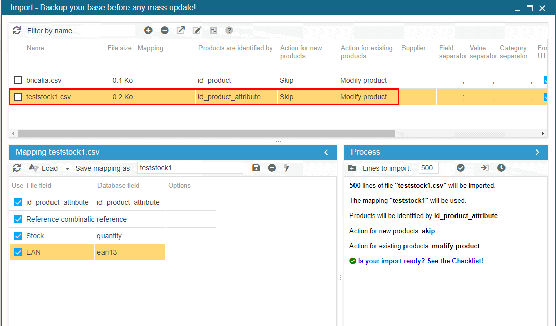 With Store Commander, importing a CSV file is very simple, thanks to our dedicated import interface.