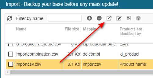 If you need to download a CSV file from the import window, select the file and click the corresponding icon on the toolbar