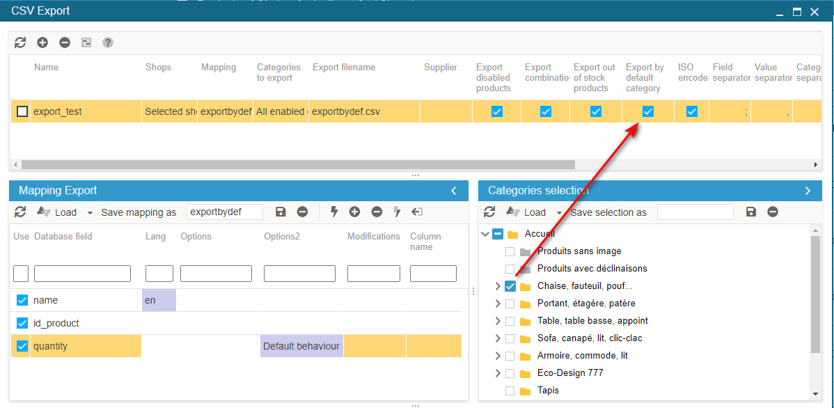 This option is very useful when running CSV export, and the number of products exported does not match the number of products you can see in the category in the interface, when the option 'export by default category' is ticked in your export configuration.