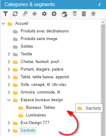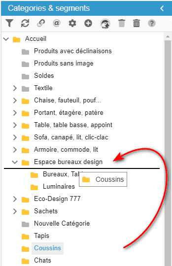 Indeed you can easily reorganize your categories and sub-categories in a blink of an eye by using the drag and drop feature in Store Commander.