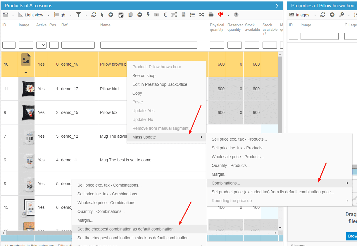 With Store Commander, you can define your cheapest combination as the default one so that the display in the front office is more consistent for the customer.