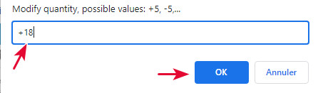 Then enter the quantity you wish to add (to the existing stock) in the small window provided for this purpose, and validate OK.