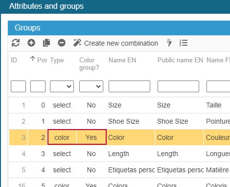Once you have created your product combinations using the color attribute, you can decide to display a color palette on the product page of your shop.