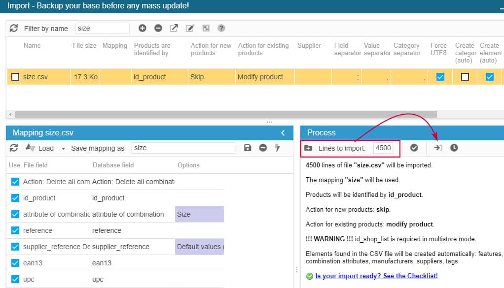 The exported information will enable us to re-use them when creating the new combinations when importing in the next step, so nothing will be lost.