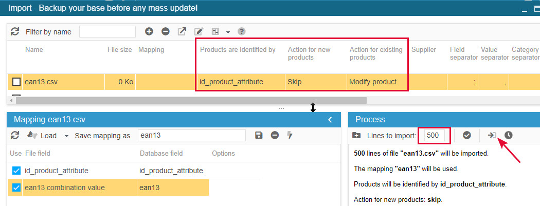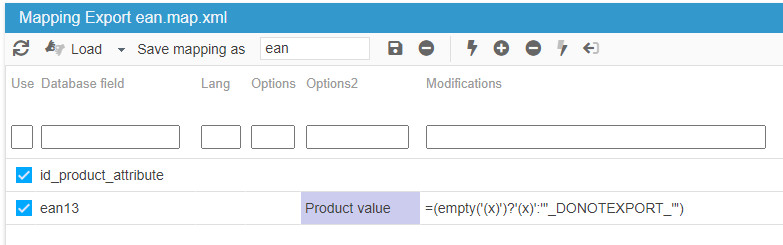 - insert the formula below in the Modifications column. We will the export combinations with an empty ean13 - see screenshot below: