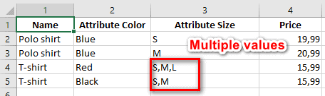 The column of the CSV file includes multiple attributes names to import in the same corresponding cell. The value separator used in the CSV file will need to match the separator selected in the import configuration.