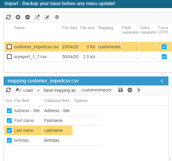Store Commander's interface includes a CSV import tool dedicated to the Customers database, allowing you to add and/or modify your customers data in bulk.