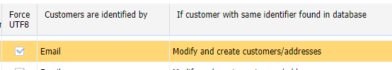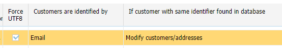 These two options are called 'Customers identified by' & 'If a customers with the same identifier is found in the database'.