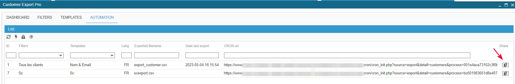 All the exports that you configured, visible on the Dashboard are available in the AUTOMATION tab.