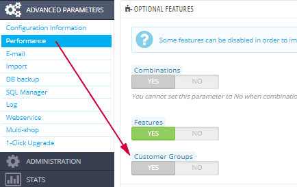 If the customer groups are grayed out in Store Commander's Customers interface, please check that the Prestashop 1.6 option located in Advanced Parameters > Performance > Optional Features > Customer groups = NO