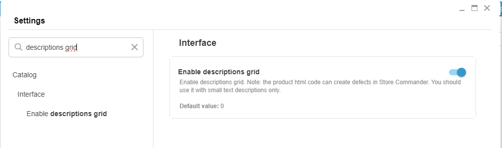 If this view is not listed in the drop-down menu, please navigate to Tools > Settings > Interface > Enable descriptions grid > set the value to 1 to enable the view.