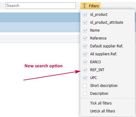 We will be adding this field "REF_INT" to the options of Store Commander search tool.