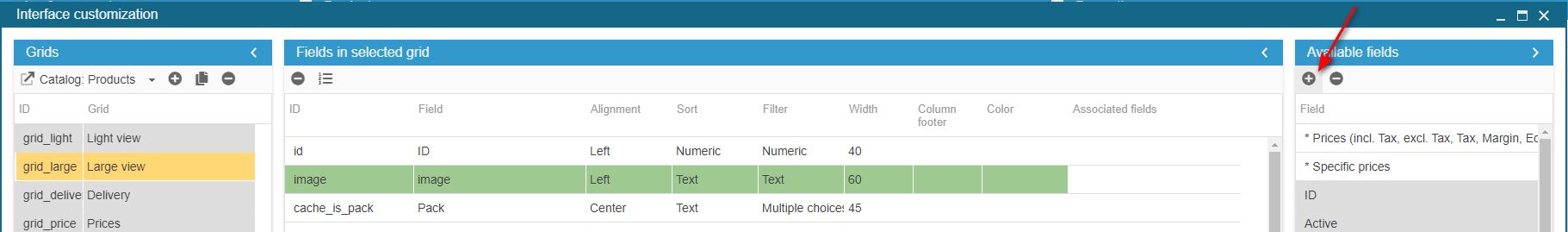Important note: Using the PRO part of the Grids Editor requires expertise in PHP/MySQL/Javascript. There are some examples on our knowledgebase: https://www.storecommander.com/support/en/198-interface-customization-pro