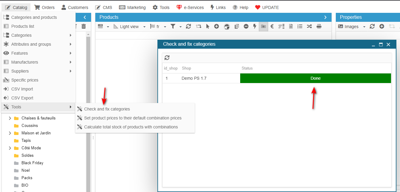 If the erreur remains, use FixMyPrestaShop (Tools menu in your Sc interface) and run controls specific to categories.