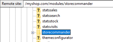 Under the 'Remote site' section, browse to /modules/storecommander/