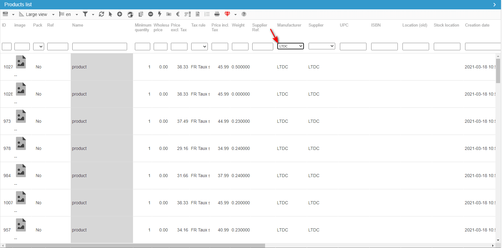 This is it, all the products associated to this manufacturer are now displayed, and you are ready to work on these products only.