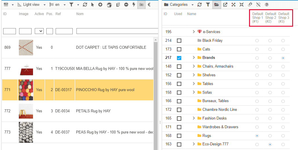 You can therefore choose the default category of your product on each of the shops they exist in by using this radio button.