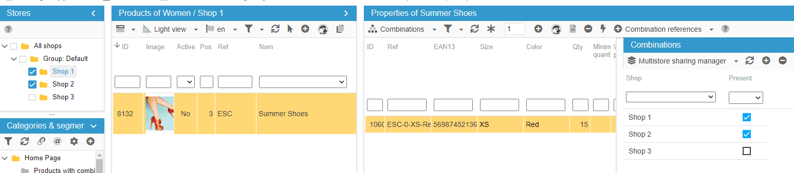 In this example, the first combination will be available in Shop 1 and Shop 2.