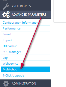 Once the option is enabled, you can access the multistore management under Advanced Parameters > Multistore/Multishop