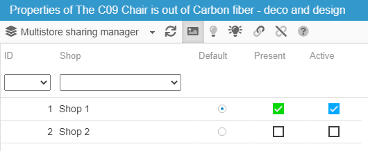 Once you have selected the product(s) you need to make the change onto, open up the Multistore Sharing Manager panel from the Properties column.
