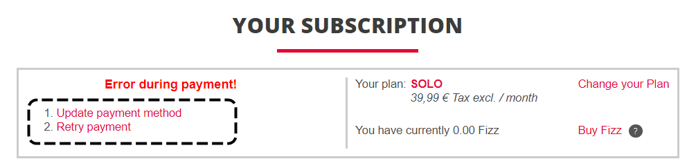 This email also invites you to log onto your account to apply one of the two solutions displayed on your Subscription page: