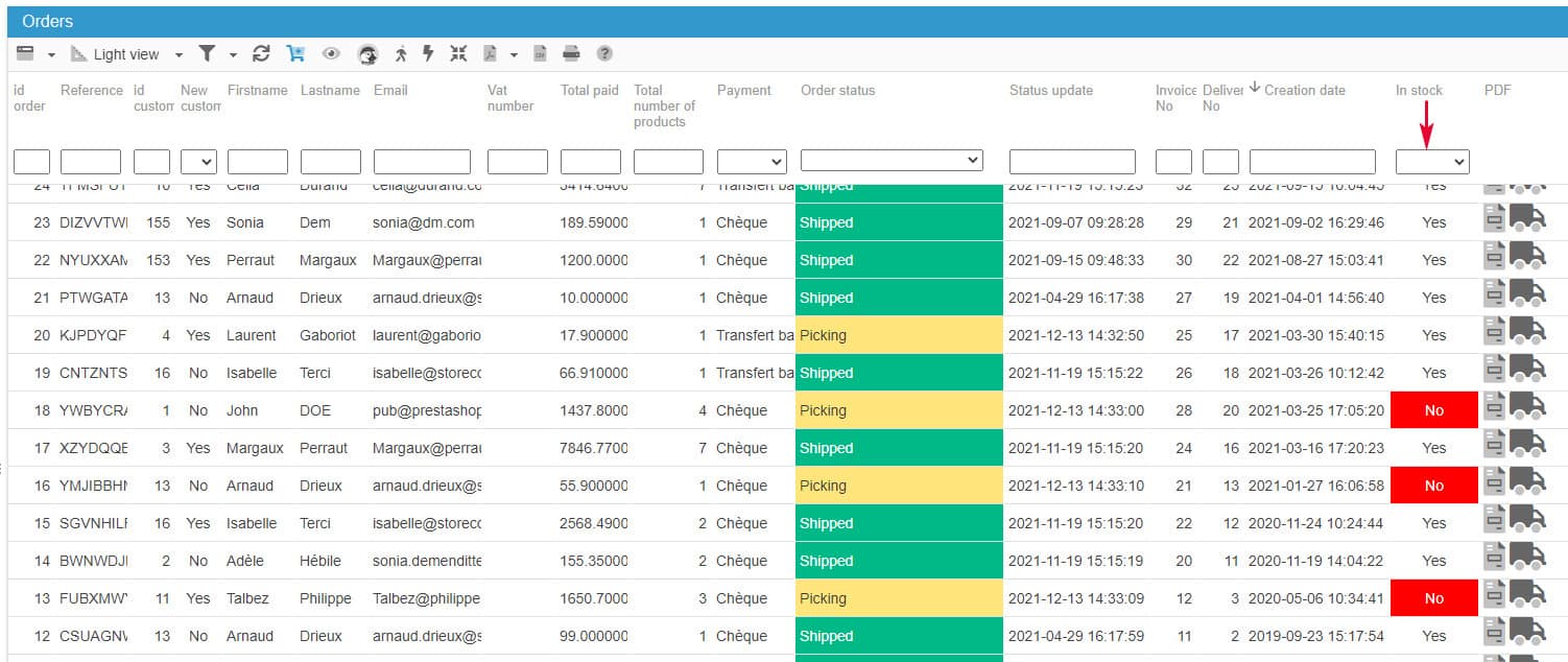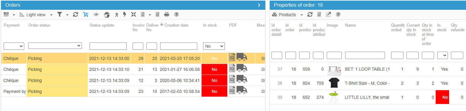 If you authorized orders of out of stock products, you can see in the blink of an eye the orders including products with 0 quantity.