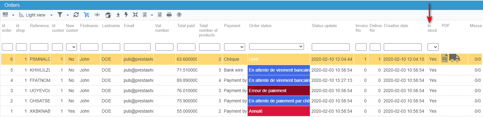 - Visualize if orders can be shipped totally or partially in an instant using the in stock column