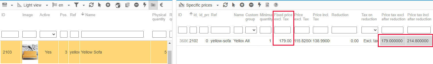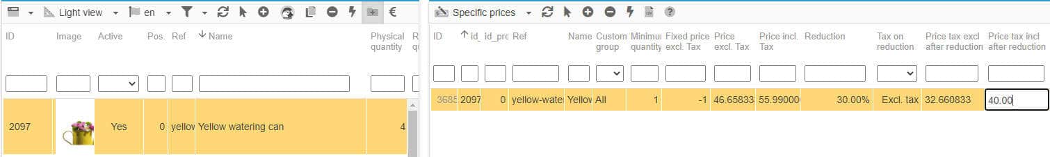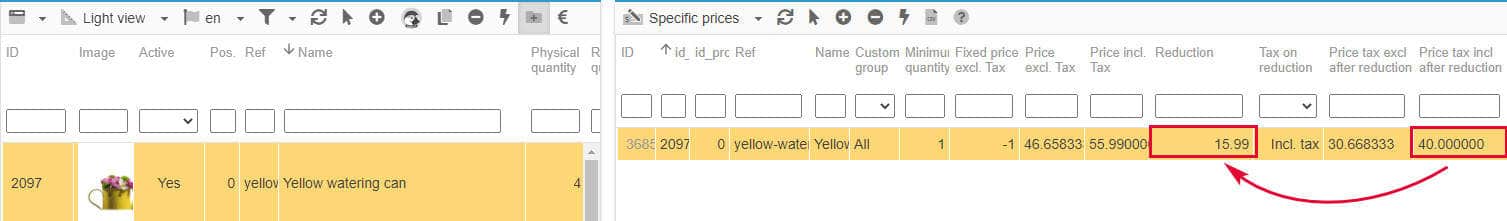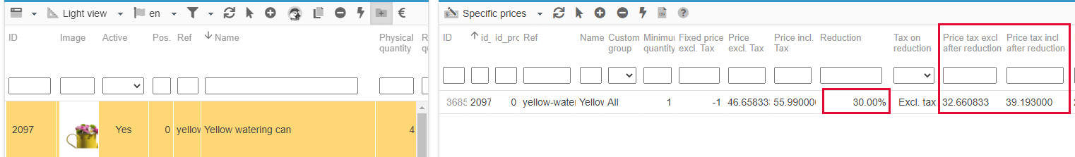 Important note: both fields price tax excl after reduction and price tax incl after reduction will be greyed out and in read-only (non editable) IF a fixed price is used - a fixed price replaces the current product price.