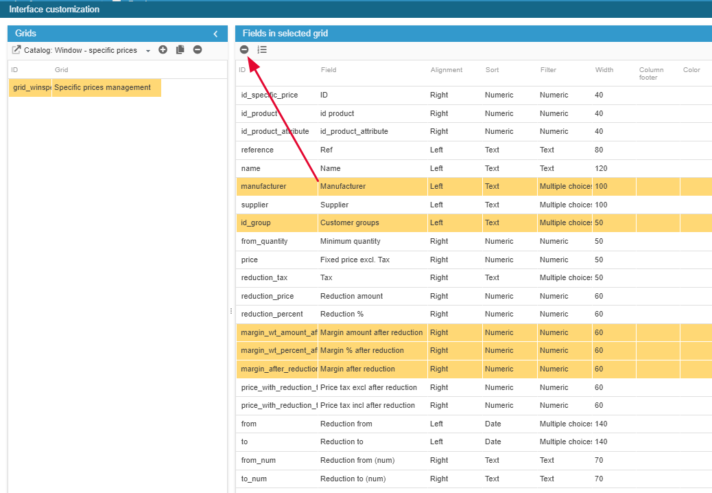 The interface dedicated to specific prices, integrated to Sc, contains all the fields related to promotions as well as other fields that we have added for you to work on these prices efficiently.