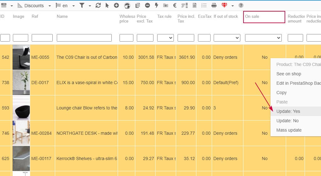 To enable (or disable) this option, select the concerned products > right click > Update: Yes
