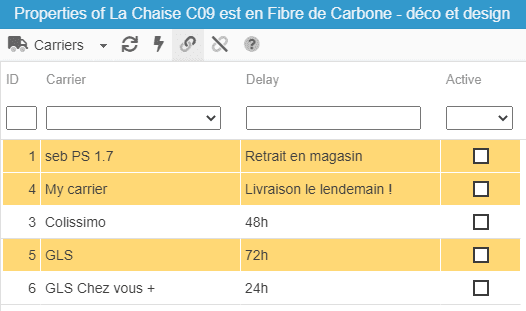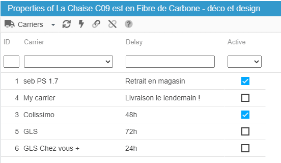 You will find a Carriers panel in the Properties column (right handside) in Store Commander's interface.