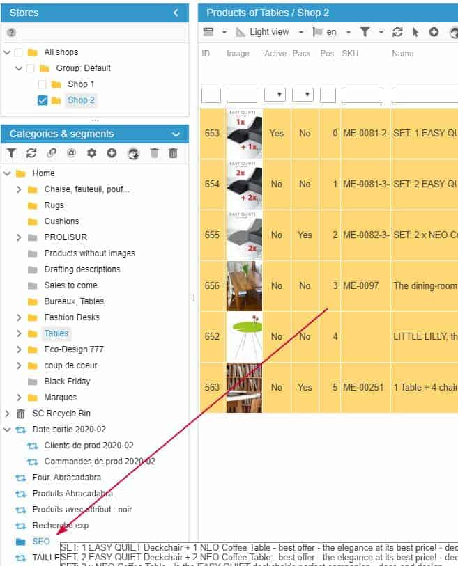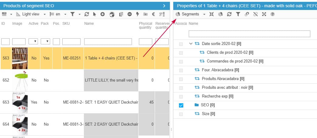 or use the Segments grid located in the Properties column (right handside) in any interface.