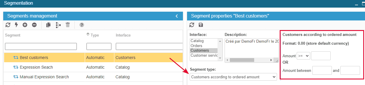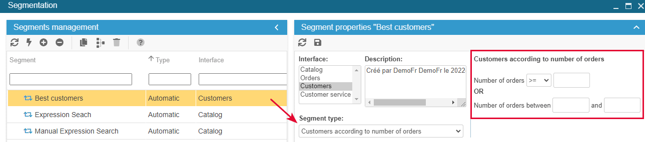 If you need to use more specific criteria on the number of orders or depending on the amount ordered, then the Segmentation tool will be more appropriated.