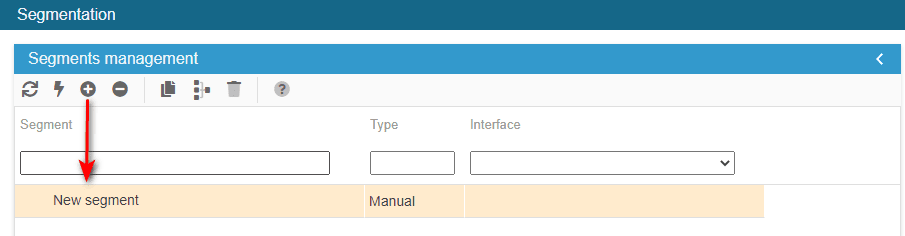 • From the Segment management panel, click on the add_dis.png icon on the toolbar to create your segment.