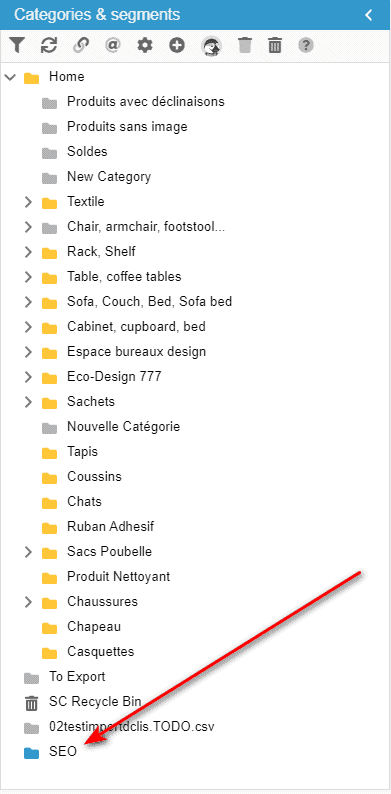 You can now add products into this folder using the drag/drop, or tick the box of the SEO folder in the Properties column.