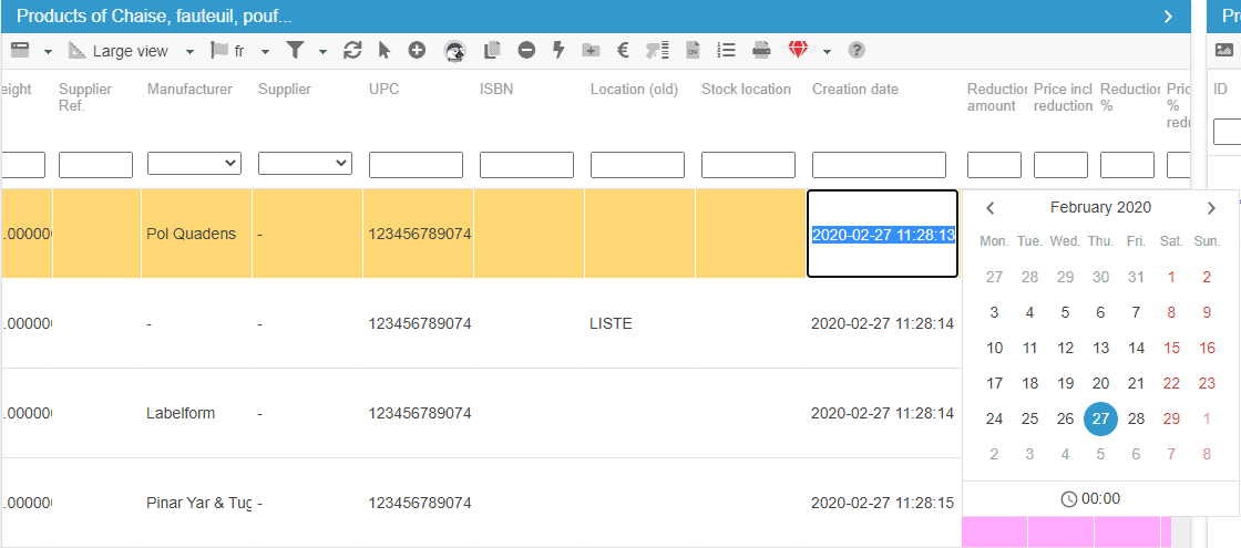 You will find the 'Creation date' field in the References view. Double click to display the calendar and choose today's date.