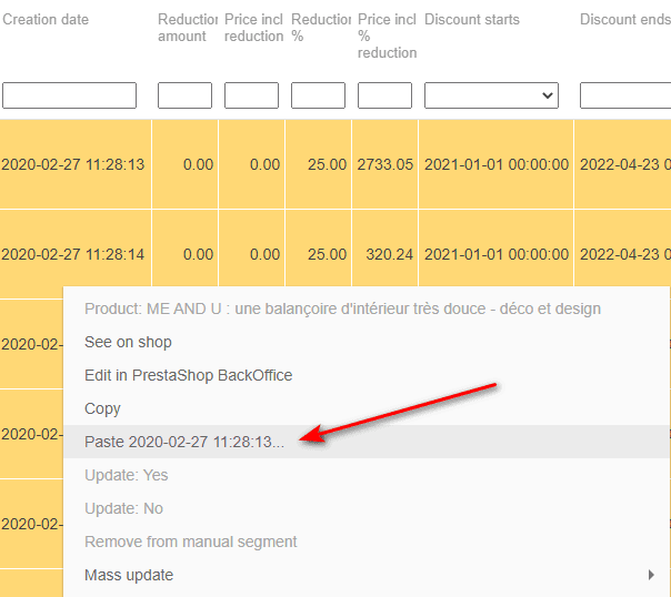 Replacing the creation date on a product with today's date will automatically display the product in the New Products Block on the Home page of your online store (if the block is enabled in your PrestaShop backoffice of course).