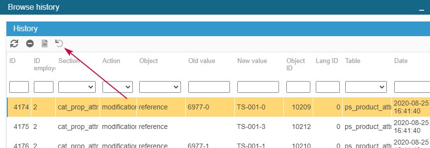 Most modifications made manually in Sc interface can be cancelled, meaning reverting back to the previous value, using the icon