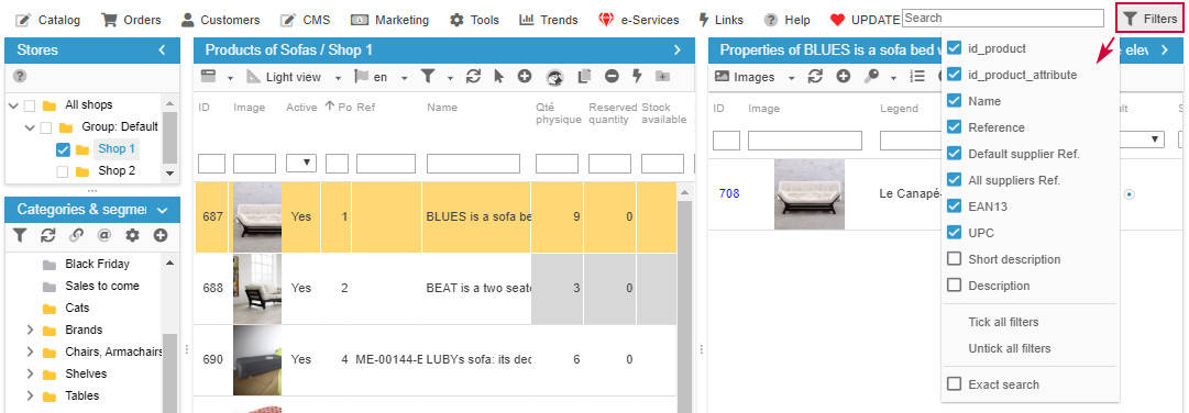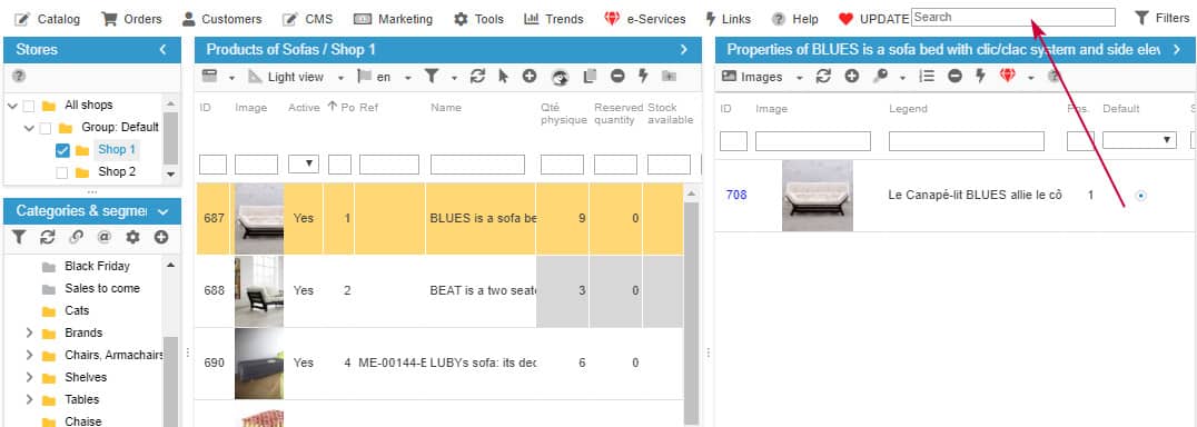 Did you know that you find/display a product in Sc very simply and quickly too using the search tool in Store Commander?