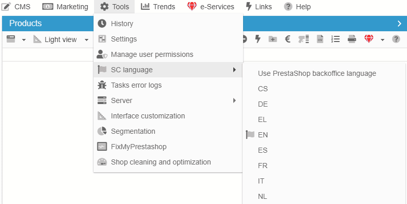 Store Commander's interface is readily available in English, French, Spanish, Italian, German and Greek to 100%.
