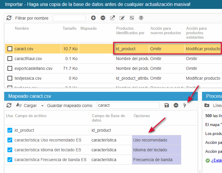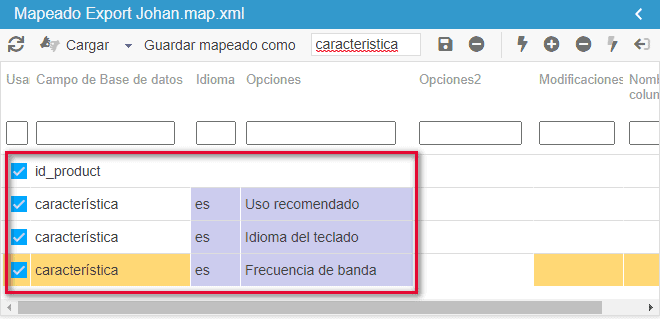 La forma más eficaz y rápida es exportar las características ya presentes en sus productos (personalizadas y predefinidas), y luego importar el archivo que utilizará los valores predefinidos.
