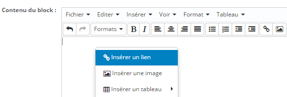 La página de configuración del bloque se encuentra en la parte inferior de la página de configuración del módulo: