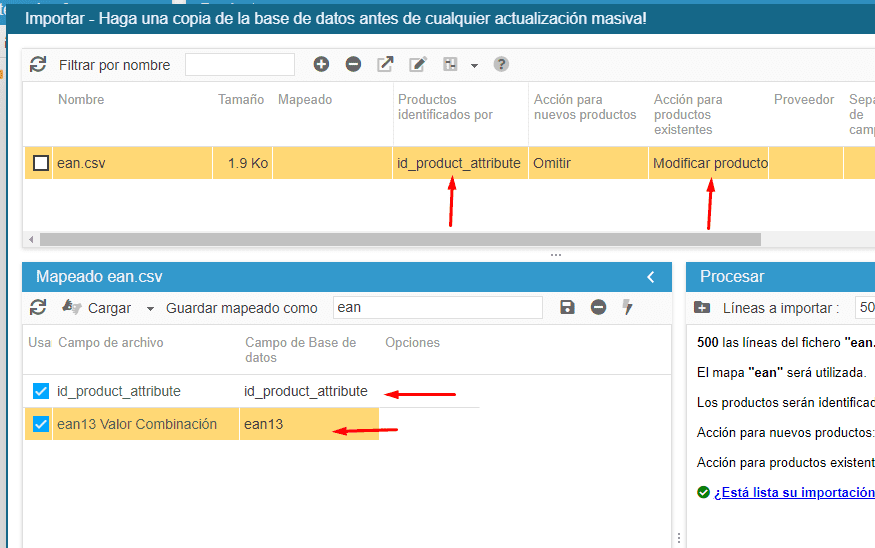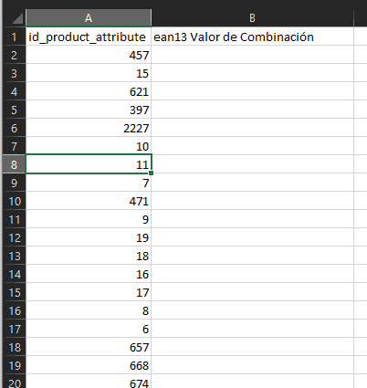 Para empezar, tendrá que exportar sus combinaciones y su EAN para detectar las que no lo tienen.