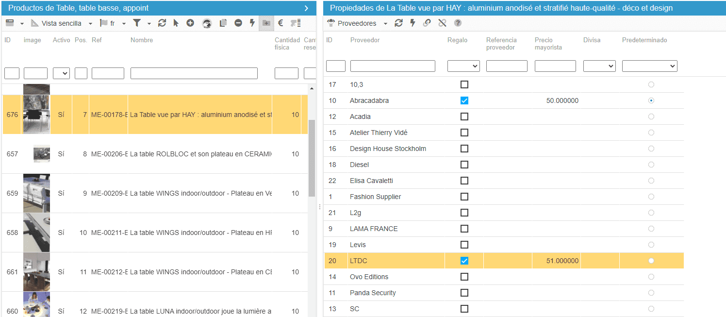Los resultados de la importación se mostrarán en la tabla de proveedores en el panel de la derecha de la tabla de combinaciones.