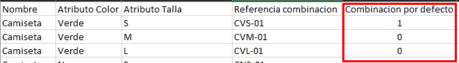 Este campo define la combinación por defecto.