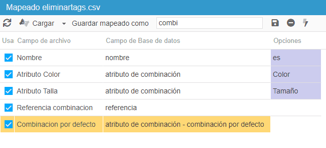 La herramienta de import CSV de Store Commander ofrece diferentes campos de mapping para importar sus combinaciones. A continuación, las explicaciones detalladas.
